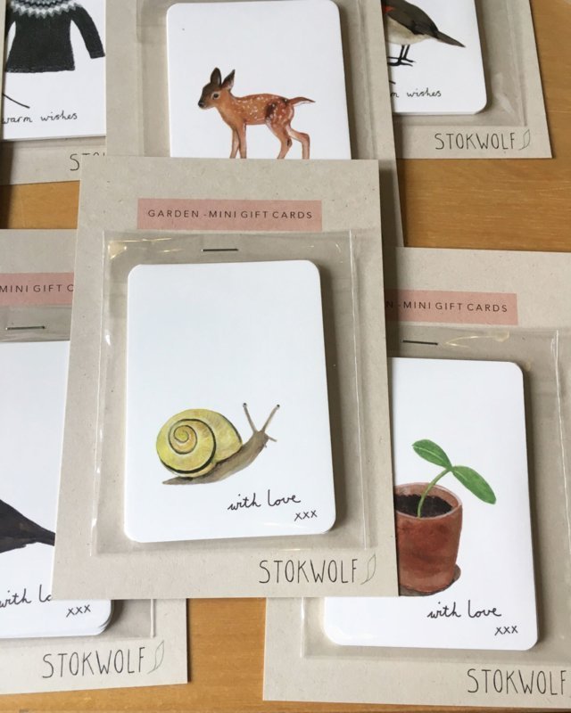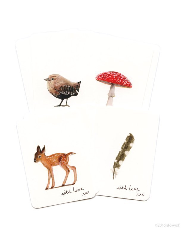 Schrijf met passie, verstuur met liefde deze mini kaartjes van Stokwolf met daarop illustraties uit het bos. Met de hand geïllustreerd door Thalysia van Esch.