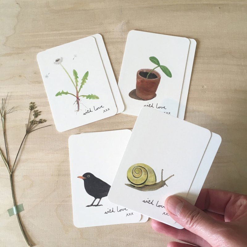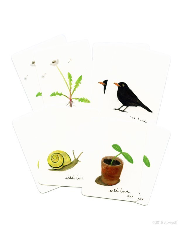 Schrijf met passie, verstuur met liefde deze mini kaartjes van Stokwolf met daarop illustraties uit de tuin. Met de hand geïllustreerd door Thalysia van Esch.
