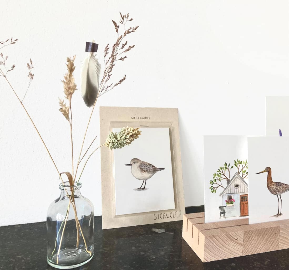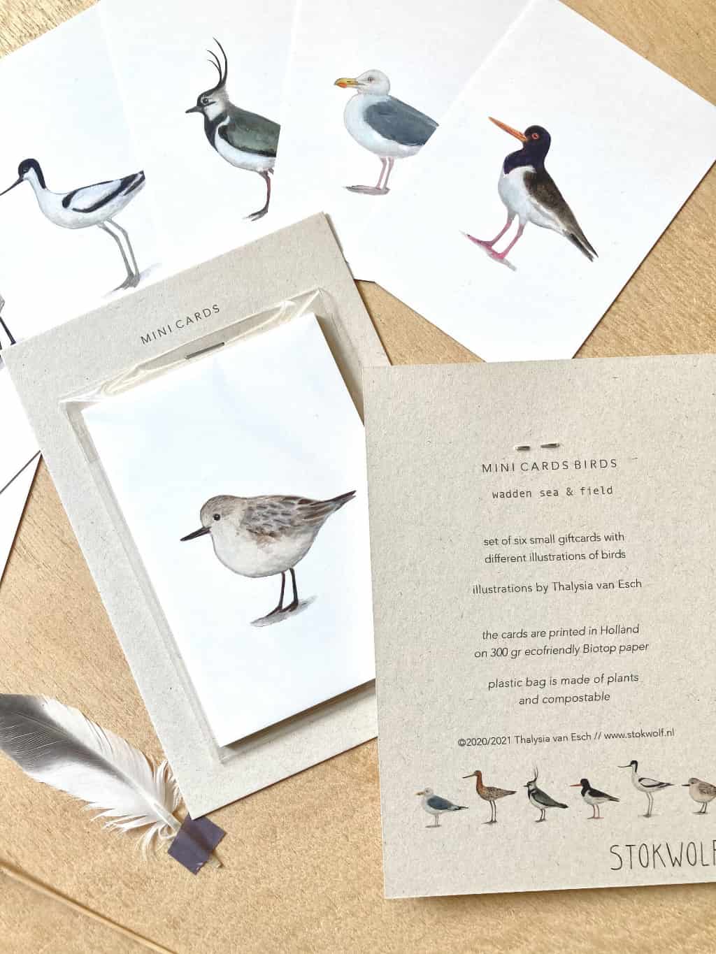 De mini kaartjes met wad- en weidevogels van Stokwolf