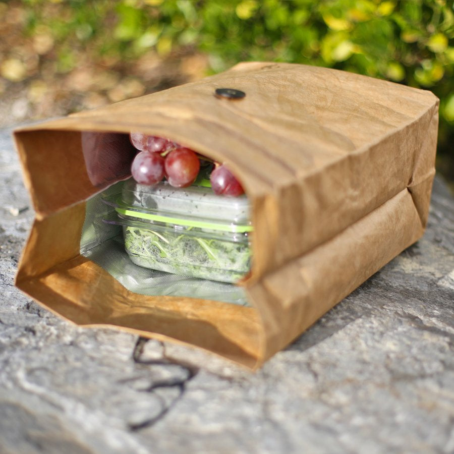 De unieke lunchtas is gemaakt van Tyvek®, een licht, duurzaam en ademend materiaal, maar ook volledig bestand tegen water en het binnendringen van bacteriën. Om je lunch koel te houden is er een isolerende zilverfolie voering toegevoegd!