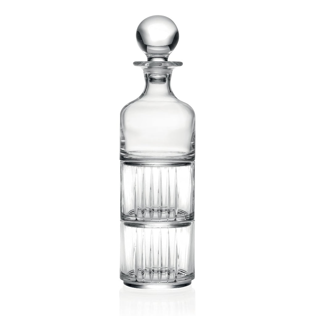 - de set bestaat uit: twee stapelbare whisky glazen elk 37 cl. met een daarop passend klein karafje van 33,5 cl.