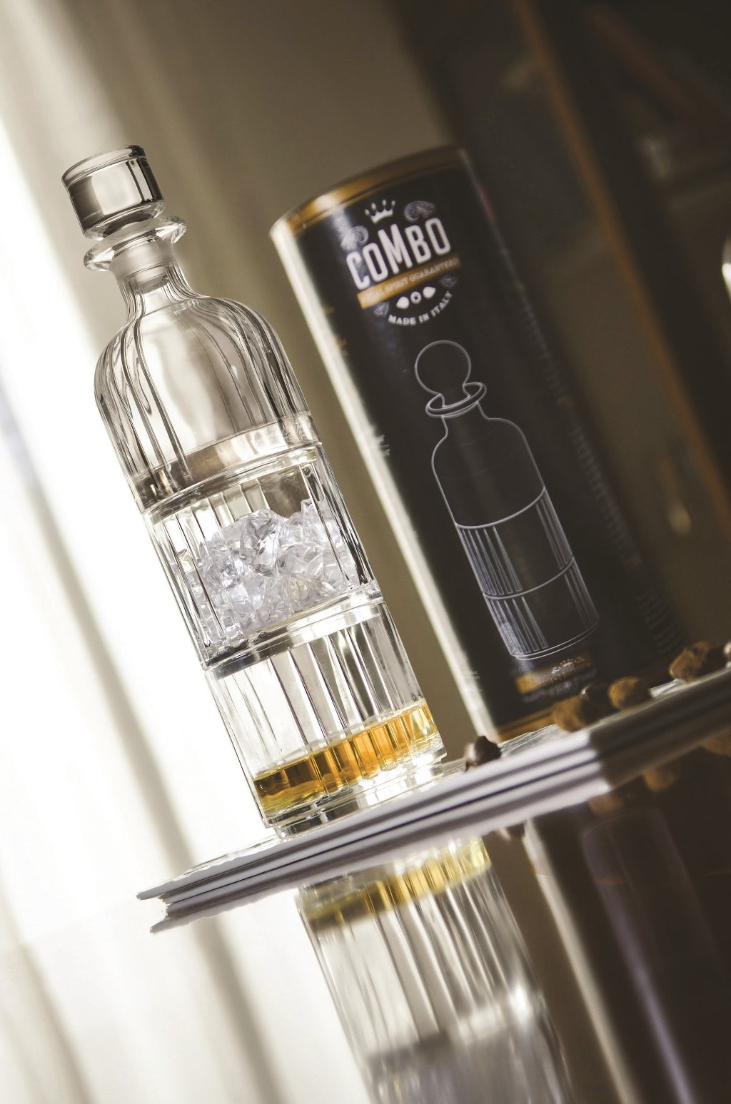De vierdelige whisky set van het Italiaanse RCR. Een unieke set die volledig in elkaar past en gecombineerd op een whisky fles lijkt. Een karaf met twee prachtig geproduceerde en prettig drinkende whiskyglazen. Een lust voor het oog en een echte eyecatcher in het huis. Tevens een mooi geschenk in full colour koker.