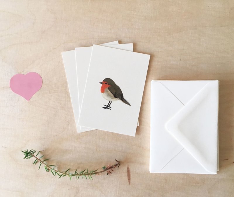 De mini kaartjes met geranium & roodborstje van Stokwolf